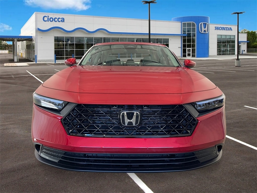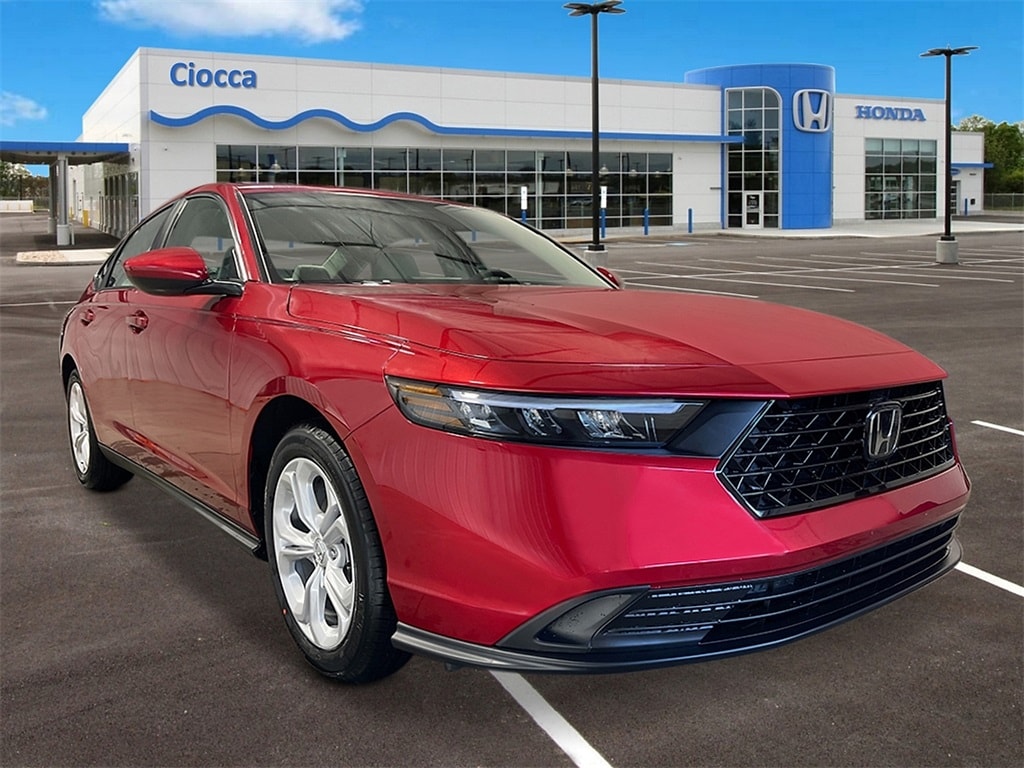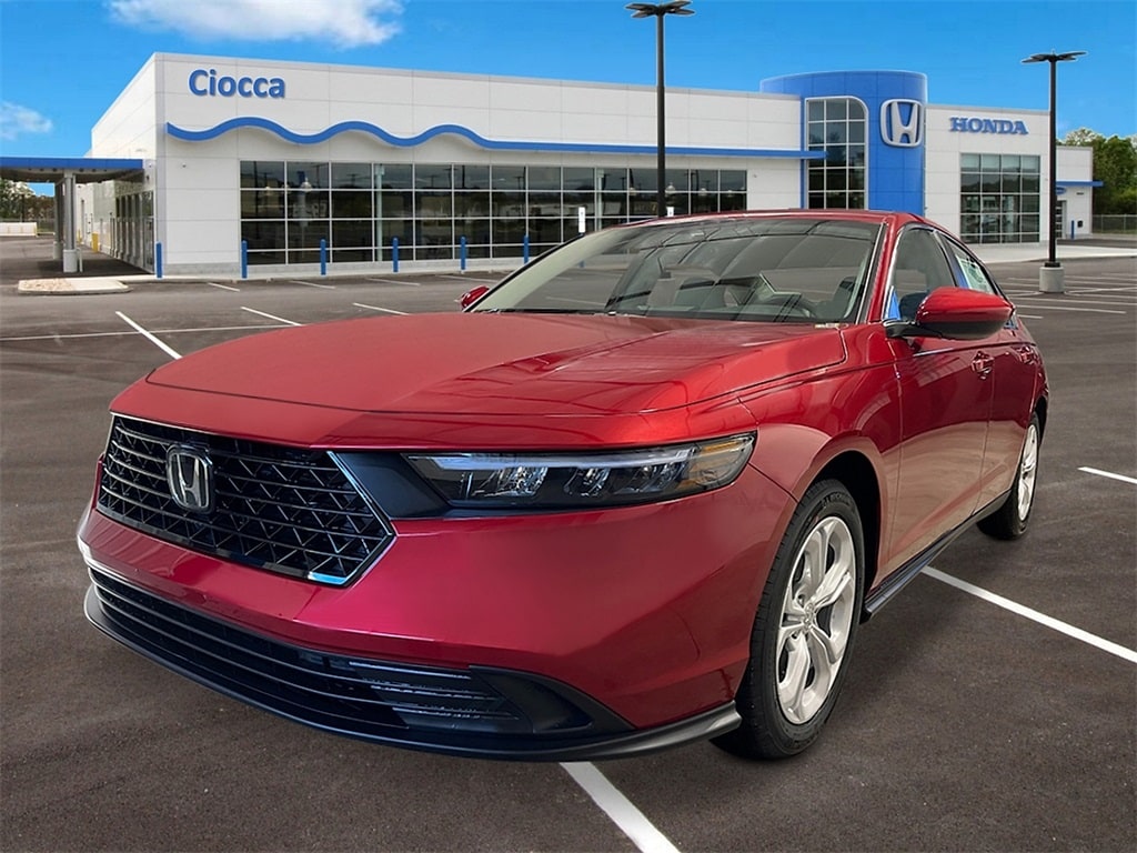 2026 Honda Accord LX Accord LX, 4D Sedan, Radiant Red, Gry Lth &Clth Cloth, Adaptive Cruise Control: Adaptive Cruise Control (ACC) with Low-Speed Follow, Apple CarPlay/Android Auto, Automatic temperature control, Fully automatic headlights, Lane departure: Lane Keeping Assist System (LKAS) active, Steering wheel mounted audio controls. 29/37 City/Highway MPG