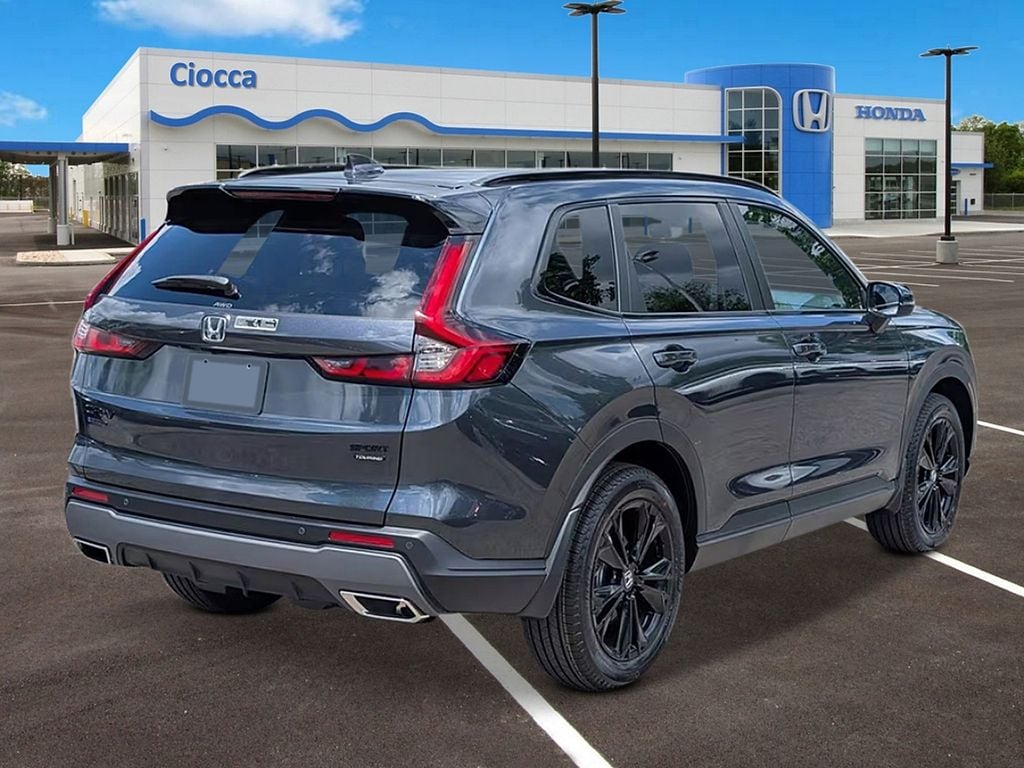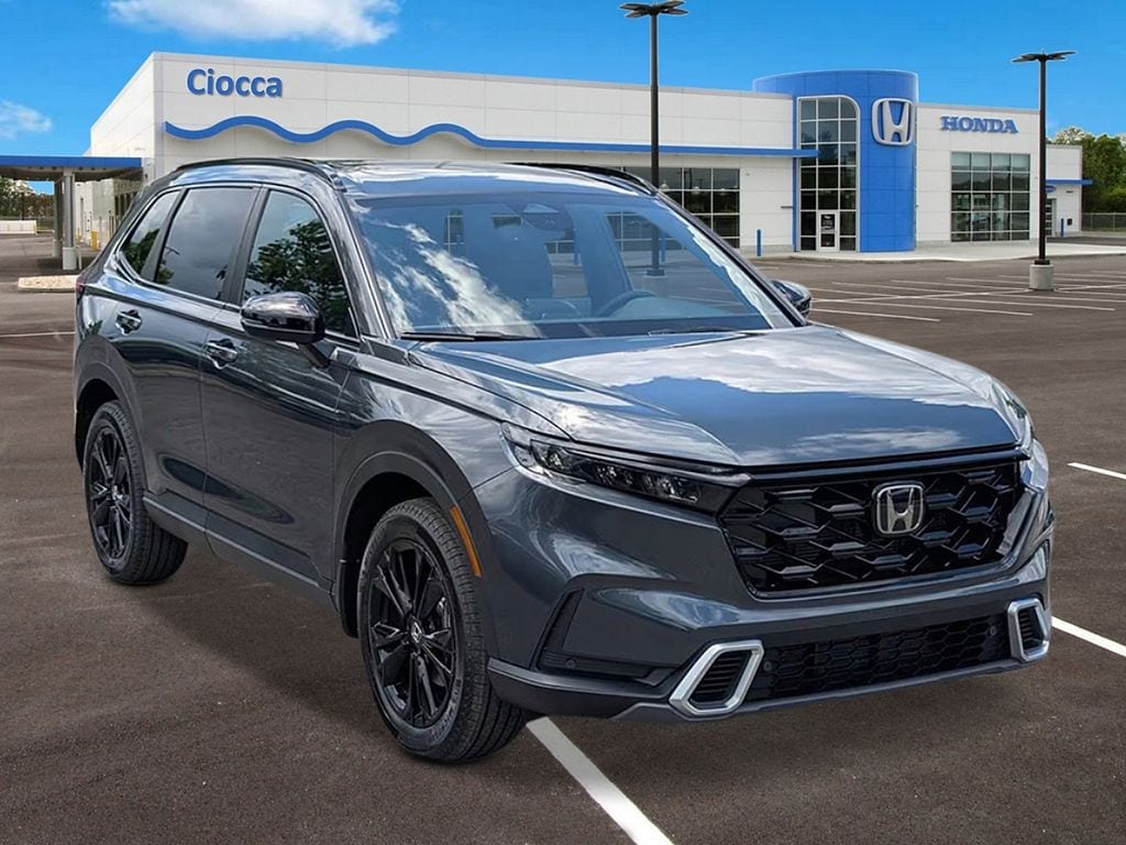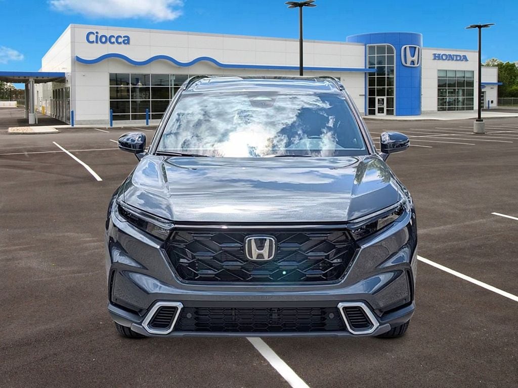 2026 Honda CR-V Hybrid Sport Touring CR-V Hybrid Sport Touring, 4D Sport Utility, 2.0L I4 DOHC 16V, AWD, Meteorite Gray Metallic, Blk Lth &Clth Leather, Adaptive Cruise Control: Adaptive Cruise Control (ACC) with Low-Speed Follow, Apple CarPlay/Android Auto, Automatic temperature control, Blind Spot Information (BSI) System warning, Fully automatic headlights, Heated front seats, Memory seat, Navigation system: Google Maps, Power Liftgate, Power moonroof. 40/34 City/Highway MPG