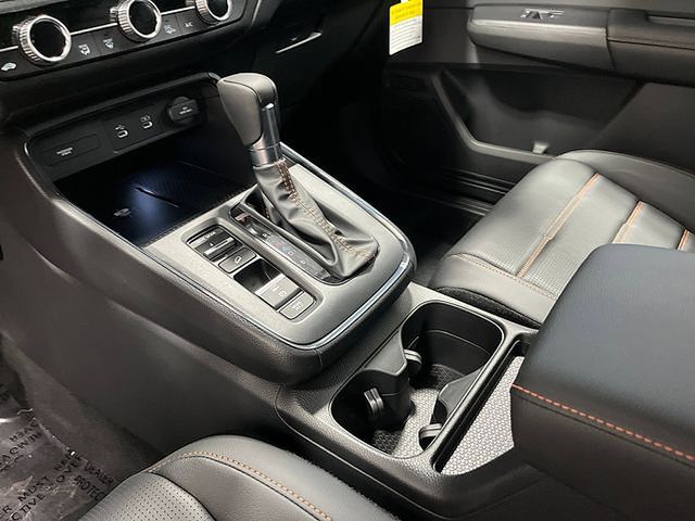 The 2026 Honda CR-V Hybrid Sport-L AWD is a premium, performance-oriented compact SUV that utilizes a sophisticated two-motor hybrid system to produce a combined 204 horsepower and 247 lb-ft of torque. Positioned as a bridge between the Sport and the top-tier Sport Touring trims, the Sport-L features a bold exterior aesthetic defined by 18-inch Berlina Black alloy wheels, rectangular dual chrome exhaust finishers, and gloss-black roof rails. Inside, the cabin is elevated by leather-trimmed seating with signature orange contrast stitching, a power-adjustable front passenger seat, and a drivers memory seat system. Technology is centered around a 9-inch color touchscreen equipped with wireless Apple CarPlay and Android Auto integration, a wireless smartphone charger, and an eight-speaker, 320-watt audio system. Equipped with Real Time AWD and a four-mode drive system (Normal, ECON, Snow, and Sport), this trim maintains an impressive EPA-estimated 40 city and 34 highway mpg while offering standard safety upgrades like front and rear parking sensors and Low-Speed Braking Control.
