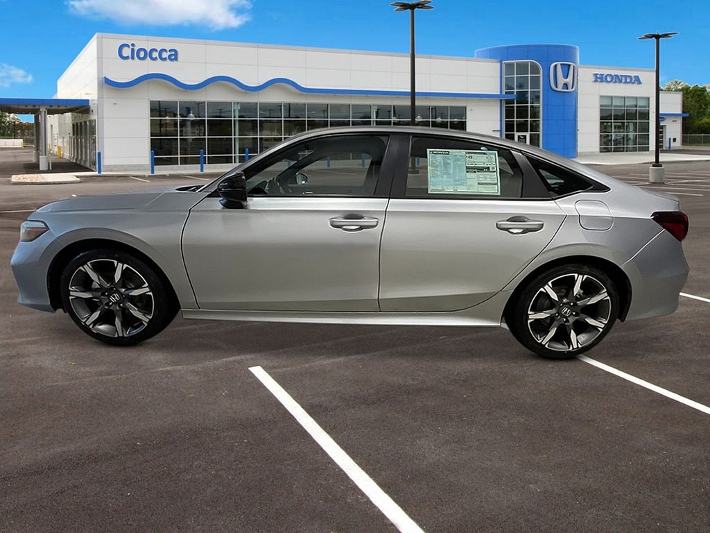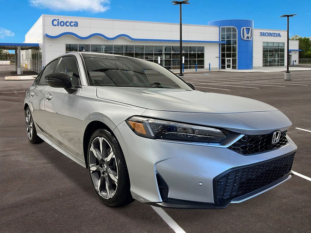 2026 Honda Civic Hybrid Sport Touring Civic Hybrid Sport Touring, 4D Sedan, Solar Silver Metallic, Blk Lth &Clth Leather, Adaptive Cruise Control: Adaptive Cruise Control (ACC) with Low-Speed Follow, Apple CarPlay/Android Auto, Automatic temperature control, Blind Spot Information (BSI) System warning, Fully automatic headlights, Heated front seats, Navigation system: Google Maps, Power moonroof, Steering wheel mounted audio controls. 50/47 City/Highway MPG