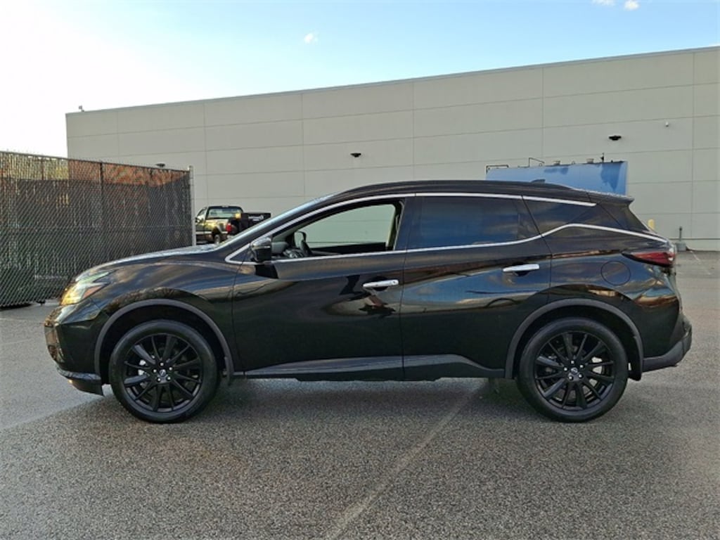 2023 Nissan Murano SV AWD, Super Black, Graphite Artificial Leather, Auto High-beam Headlights, Black Splash Guards, Blind Spot Warning, Front fog lights, Illuminated Kickplates, Midnight Edition Badge, NissanConnect featuring Apple CarPlay and Android Auto, Power driver seat, SV Midnight Edition Package, Wheels: 20" Gloss Black Aluminum Alloy.