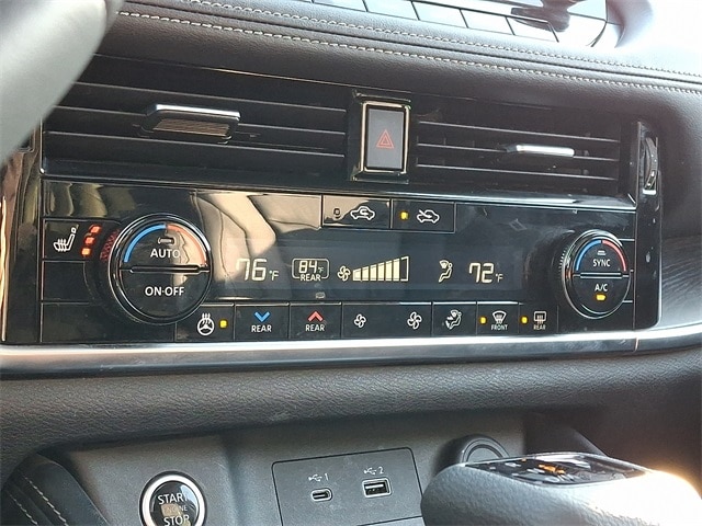 The cabin is elevated by the Platinum Premium Package, showcasing a Heads-Up Display, NissanConnect Navigation, and NissanConnect featuring Apple CarPlay and Android Auto to keep you seamlessly connected. Premium comfort features include heated front seats, rear heated seats, a heated steering wheel, and a memory drivers seat, while Tri-Zone automatic climate control ensures personalized comfort for every passenger.