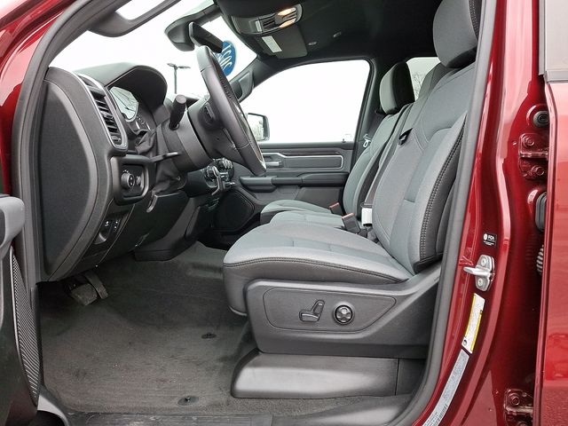 The exterior of this Ram 1500 shines in a bold Delmonico Red Pearlcoat, complemented by premium black power mirrors and a sleek, commanding presence. Step inside and you'll be greeted by a well-appointed interior, featuring a 3.5" TFT color display, power-adjustable pedals, and a leather-wrapped steering wheel.